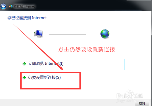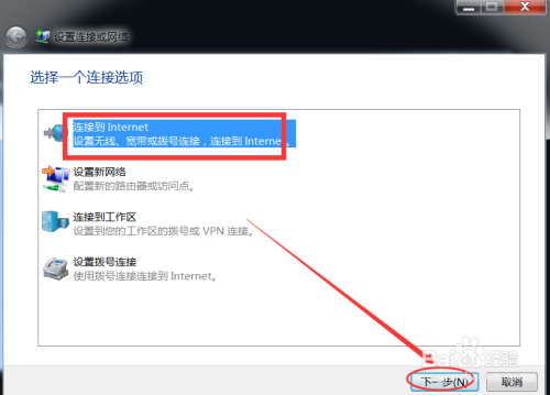 弹出【设置毗连或收集】界面,点击【毗连到internet】