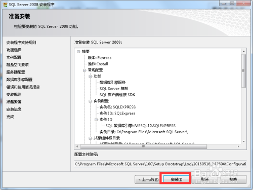 确认安装信息,点击"安装"即可起头sql server 2008的安装(如下图)