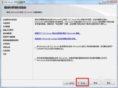 等一会儿就好,正式弹出sql server 2008的安装界面,点击"下一步"(这个也是检测了情况设置装备摆设,若是有问题,仍是自行找解决法子,一般是上个版本没有卸载清洁导致的)(如下图)