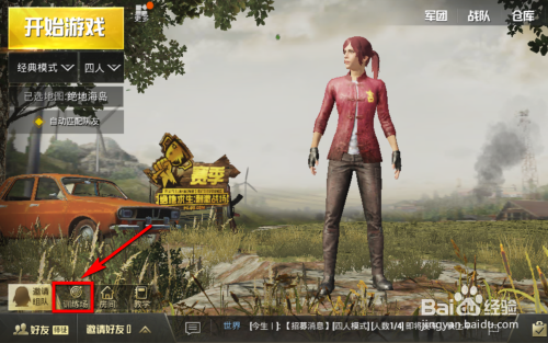首先需要我们打开游戏并登岸本身的账号,进入游戏本家儿页面,在本家儿页面左下方图示位置找到并点击【练习场】选项。