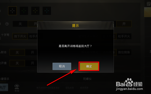 点击返回年夜厅按钮后,弹出如图所示的页面,若是你确实不想再练习了,那么就在图示的扣问窗口下方点击【确定】,如许就能退出练习场了。