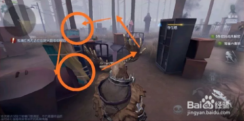 第九步:当在如下图所示位置时,右边板子直接放,左边板子用来砸晕监管者。然后按箭头绕。