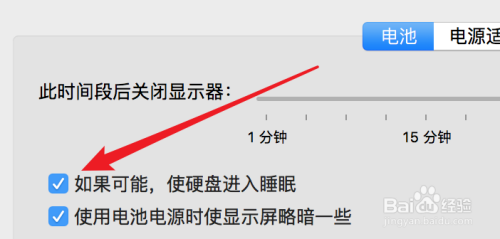 在这里,我们首先勾选上让硬盘进入睡眠这个选项。可以节流一些电。