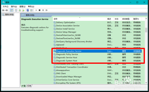 办法二:禁用Diagnostic Execution Service(诊断执行办事)、Diagnostic Policy Service(诊断策略办事)、Diagnostic Service Host(诊断办事本家儿机)和Diagnostic System Host(诊断系统本家儿机)四项办事。