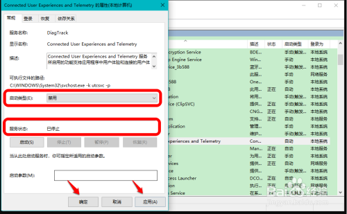 在Connected User Experiences and Telemetry 的属性窗口中选择: