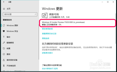 一、 Windows10从17634进级到17639版系统的过程;