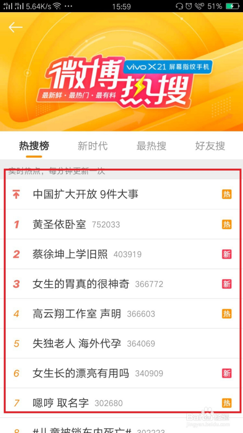 - 经由过程存眷微博热搜查看当天的最受存眷的事!