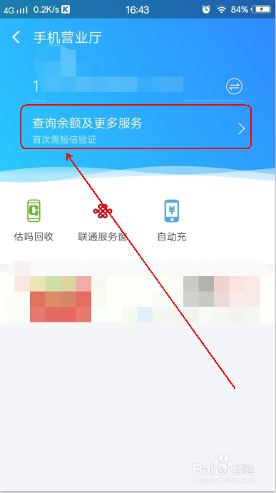 进入后,可以看到你绑定的手机号,点击 查询余额及更多办事(如图)。