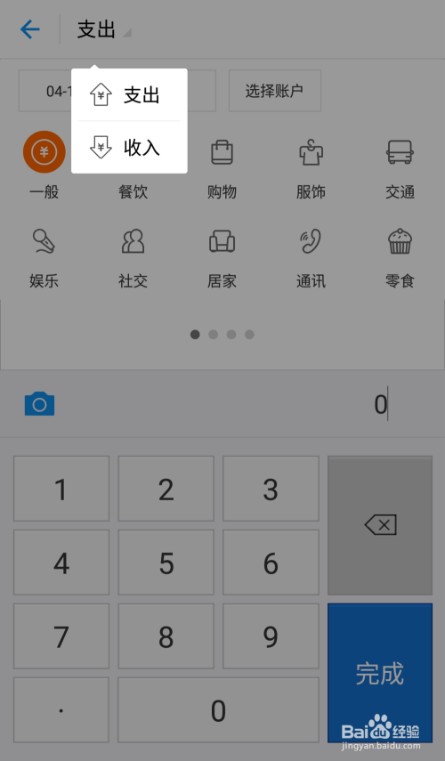 选择记账的类型还有是收入仍是支出,记账的金额等等