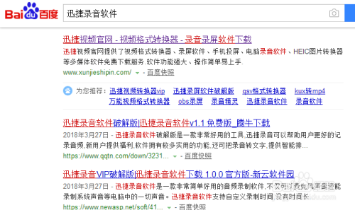 首先要做的就是在电脑中安装一条目灌音软件,可以在百度中查找迅捷灌音软件,进入官网下载安装。