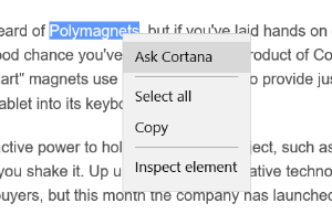 若是您转到一个页面并要求Cortana追求帮忙,只需凸起显示一个单词,按住凸起显示的项目(或右键单击)并选择扣问Cortana即可。
