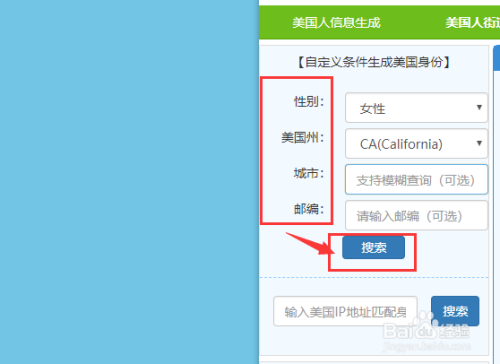 6. 步调5竣事后,鄙人图矩形框中的区域设置响应参数(性别、市和邮编);最后点击【搜刮】,最终成果如图所示