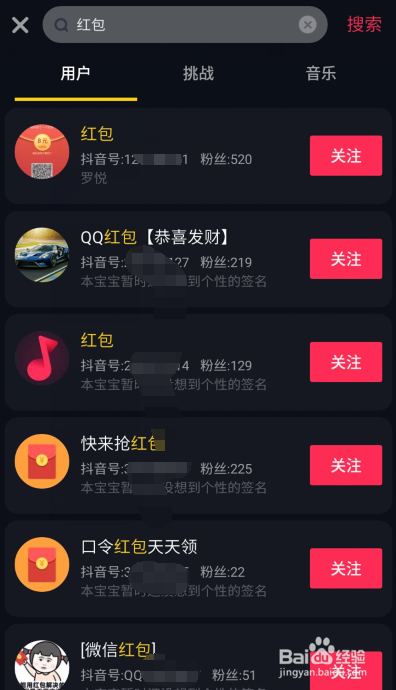 打开抖音APP,搜刮红包、明星,或者到你存眷的人里找有发红包的视频。