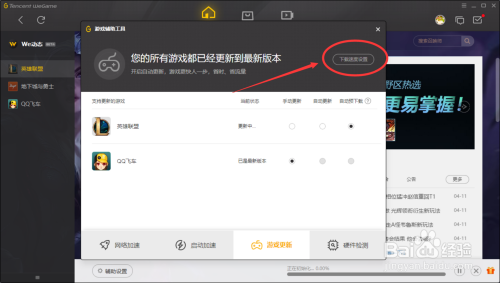 然后,我们在游戏辅助东西页面的下方找到‘游戏更新 ’进入按钮,点击进入到游戏更新界面 。