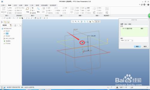 在基准平面的设置窗口中选择参照并输入偏移的距离,点击确定即可获得新建的基准平面;(图中以TOP平面作为参照)