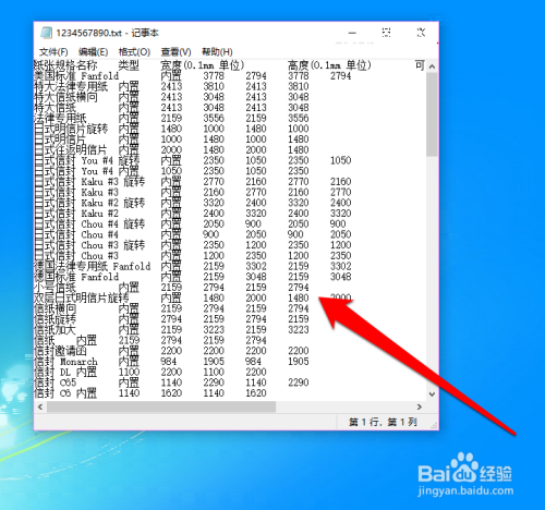 保留完当作后,打开文本文件查看导出的打印规格参数。
