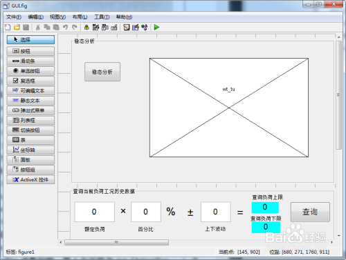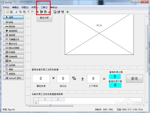 第一步:首先我们在号令窗口输入guide打开GUI界面编纂器,在这里可以编纂好我们的GUI界面控件、表格、文字框等,如下图所示。
