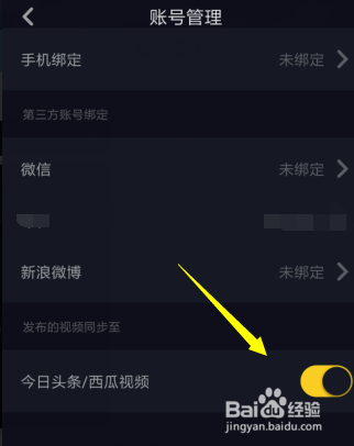 在账号办理具体的设置页面,有一个今日头条的选项,默认这是封闭的,点击开关按钮打开即可。