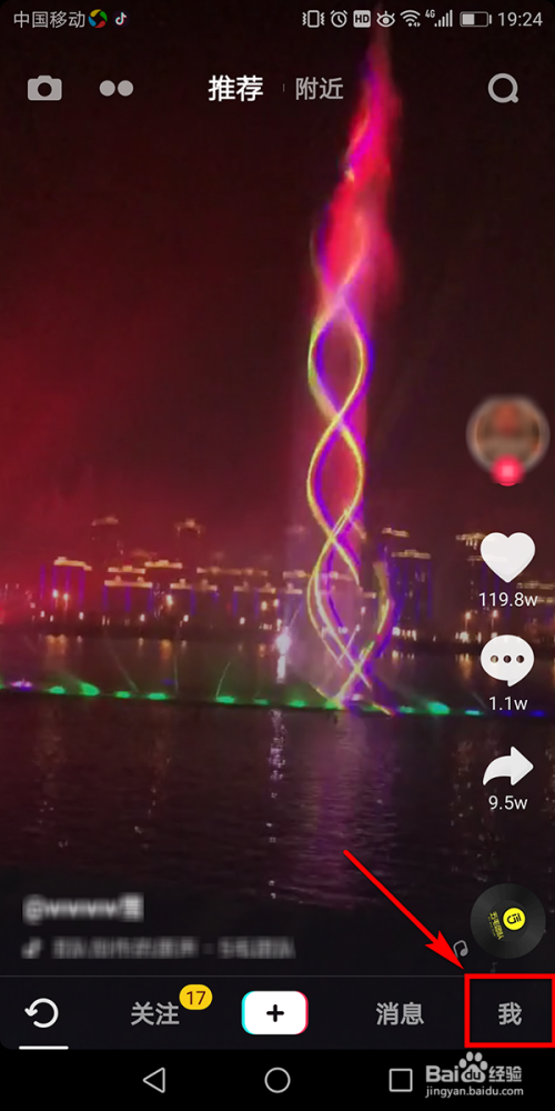 首先打开抖音视频软件,进入抖音本家儿页,在本家儿页右下方点击【我】选项。