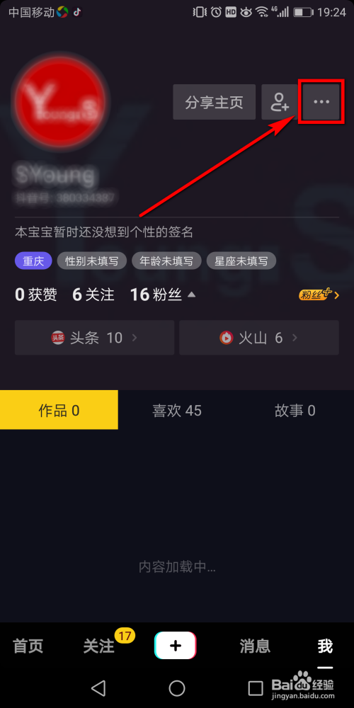 进入到我的页面后,在页面图示位置点击三个点的图标。