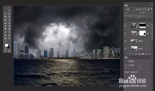 给云海图层添加图层蒙版,用笔刷擦去我们不需要的处所,把基层天空路出来