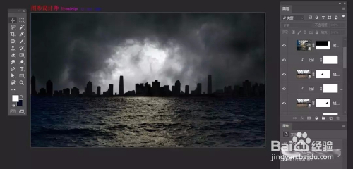 打开素材云海图片,调整一下图片的大小比例,移到布景图层下面