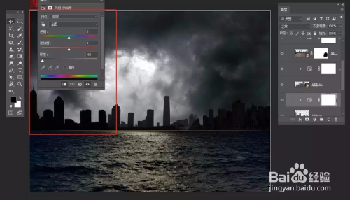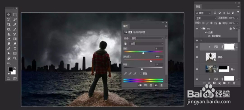 别离给城市图层调整一下颜色,添加色相/饱和度调整图层