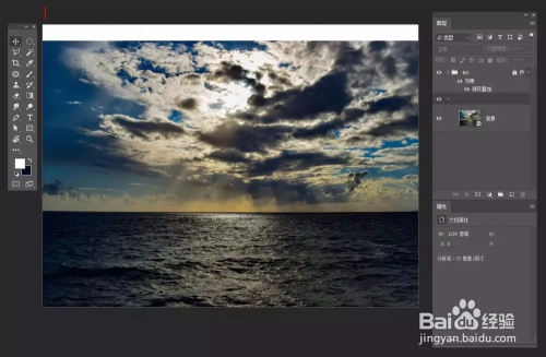 打开小编心爱的PS,这算是废话了,找到素材布景图片并打开,调整一下图片的大小比例