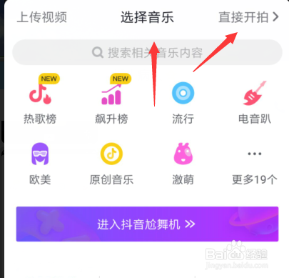 点击+号之后这里有一个很是很是主要的选项,是直接开拍仍是选择音乐,若是你拍摄的情况声场并不长短常完美的话,必然要选择音乐。