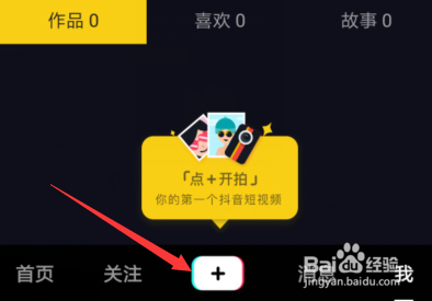 点击进入我 菜单的时辰,这里会提醒拍摄视频的按钮,点击屏幕最中心的+号。