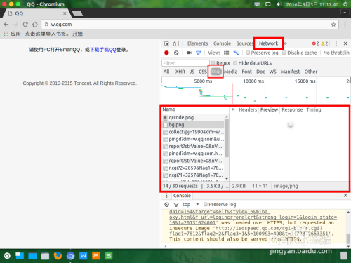 选择最上方选项卡中的"Network",再选择下方的"img"小选项卡
