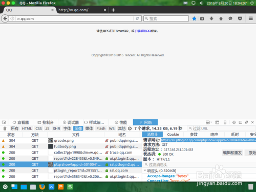 (即在name显示框中名为ptqrshow?appid=....的那一行)