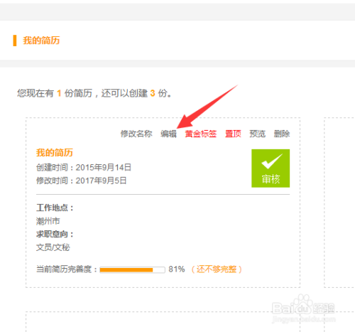 在原有的简历上面选择编纂。