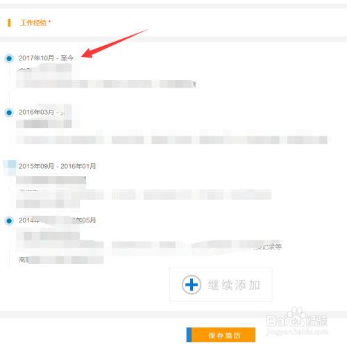 设置好后,最上面的工作经验就是新添加的经验了。