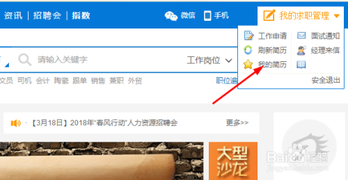 登录潮州雇用网,鼠标指标的目的我的求职办理。
