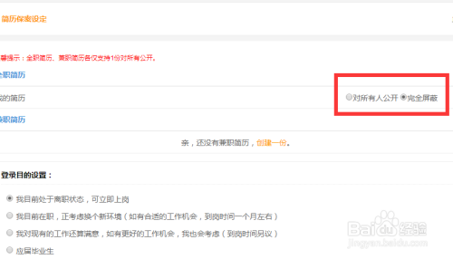 设置好后,就不会再有企业看到本身的简历来招人了。