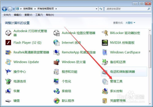 节制面板中选择办理东西点击并进入,如下图所示。