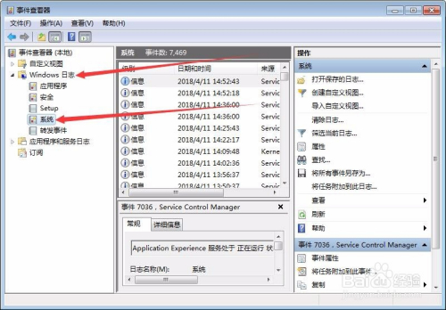 事务查看器内左侧点击Windows日记-系统,如下图所示。