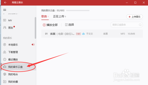 第二步,打开网易app,点击我的音乐云盘,呈现如下图的界面。