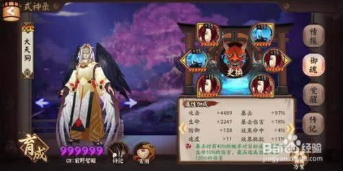 式神筹办。年夜天狗。要针女的,爆伤越高越好,天狗是最强aoe针女式神。必带