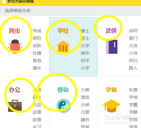 点击群当作员头衔编纂,这里会弹出默认的几种选择体例给我们选择。