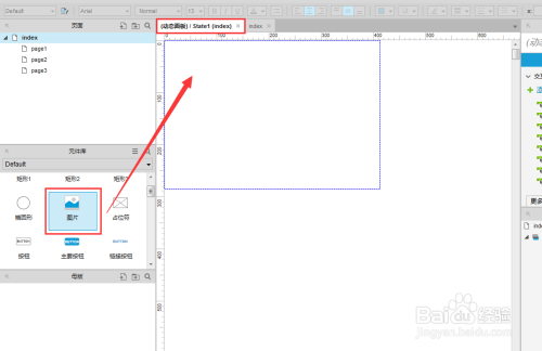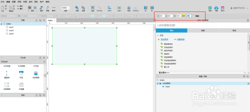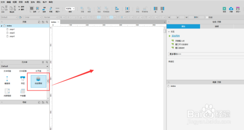 2.往本家儿界面拖入一个【动态面板】-->调节【动态面板】大小和位置。为调整便利,建议将告白图片与面板尺寸同一。