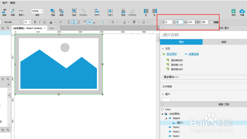 4. 给【动态面板】的每个状况添加告白图片:双击【State1】-->在打开的以下本家儿界面的蓝色虚线框内拖入【图片】(注重:只有蓝色框内内容可以被动态面板显示出来,所以需要调整图片位置和大小填充整个蓝色框)