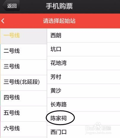 点击肇端站或终点站名称,可以从头选择车站站点,好比点击肇端站黄沙,进入选择列表,选择陈家祠