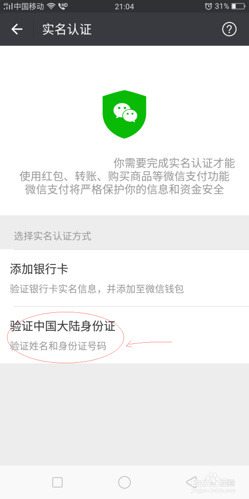 这里是实名认证,点击“验证中国年夜陆身份证”。