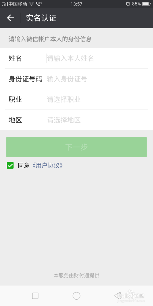 实名认证当作功是设置付出密码,两次输入一样就好了,如许就完当作了实名认证。