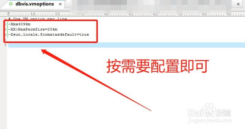 打开【dbvis.vmoptions】文件,默认的参数如下图所示,内存最年夜为256