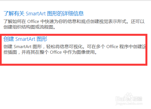 熟悉了它的功能之后我们需要找到它,点击插入功能菜单按钮--依次找到smartart图形。