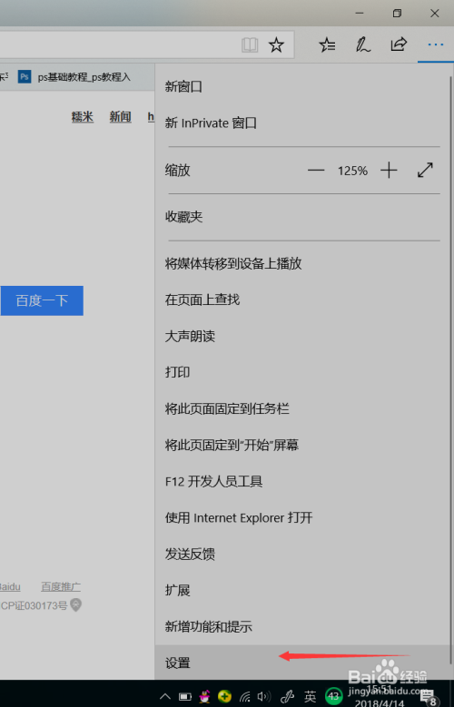 鄙人拉菜单中,我们可以看到最下面的“设置”选项。点击进入。