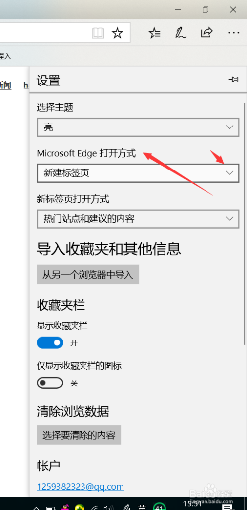 在设置页面内,我们可以看到“Microsoft Edge打开体例”选项,点击右侧的下拉箭头。